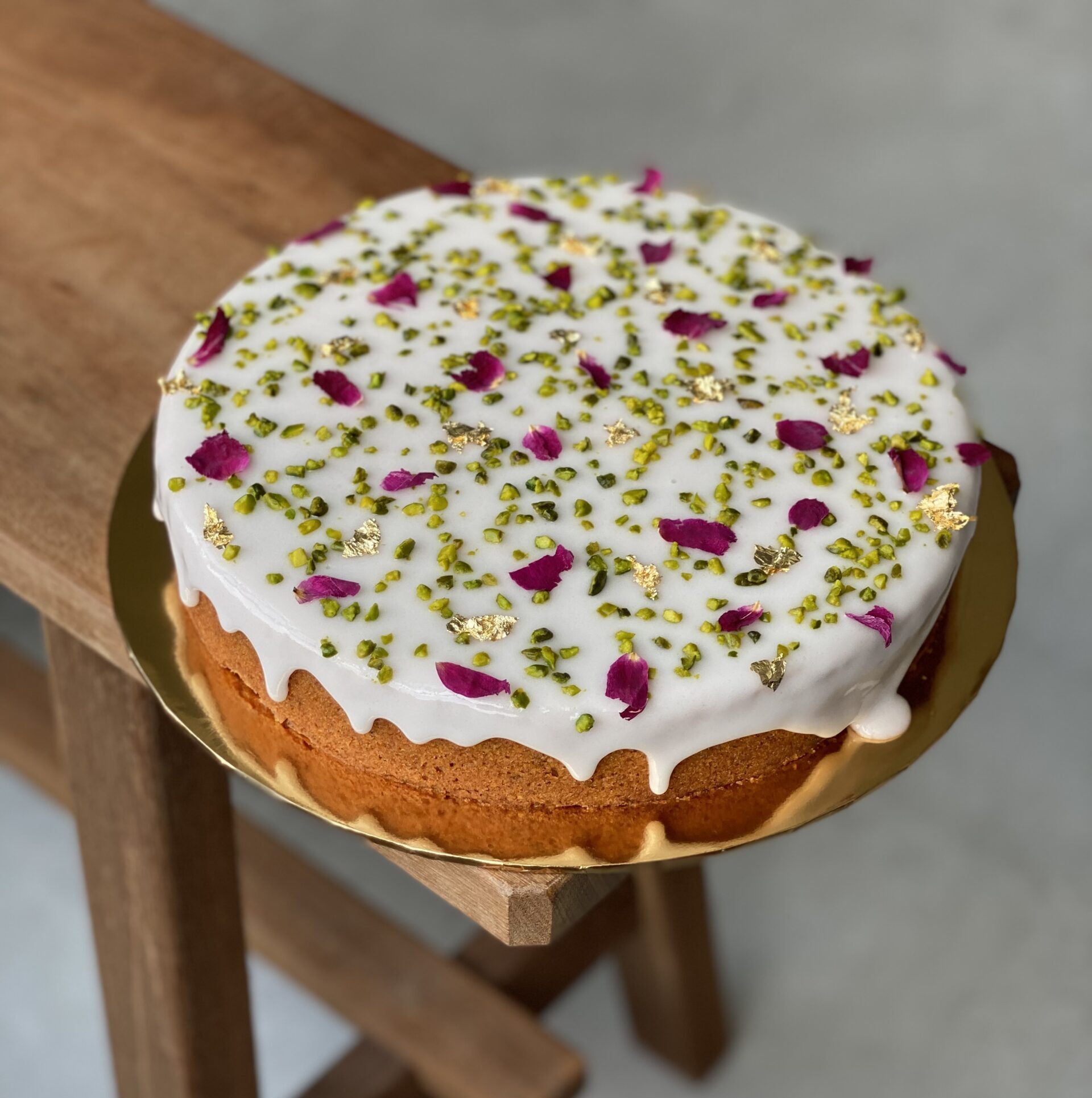 A simpler version of our signature Pistachio cake, soaked in a lemon & rose syrup and topped with a zingy lemony icing. Garnished with dried rose petals and the greenest pistachio slivers, think British lemon drizzle cake with an Arabesque twist! You’d be hard pressed to find a better partner to a cup of black coffee.